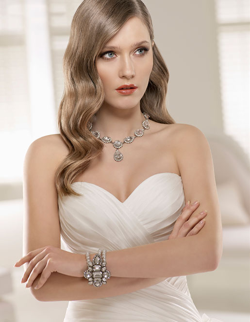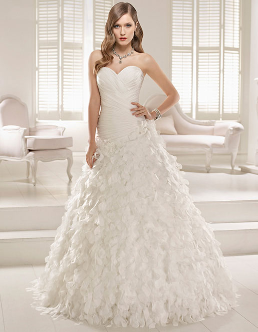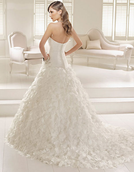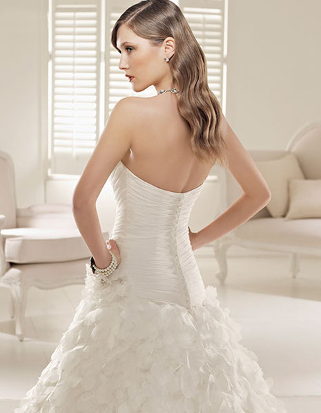スカートにかけて広がるモチーフが、甘すぎない大人花嫁の魅力を引き出します。